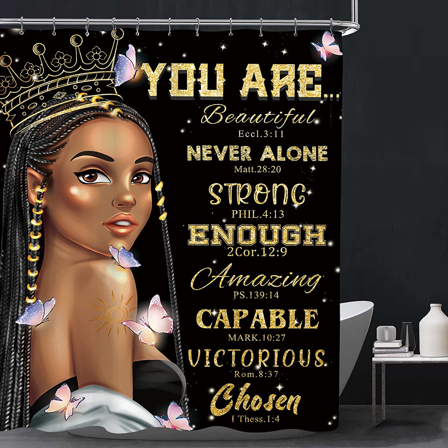 African American Woman Quotes Shower Curtain Inspirational Black Girl Queen 60wx72h Motivational Butterfly Intelligent Word Fabric Waterproof Home Bathtub Decor 12 Pack Plastic Hooks Walmart Com